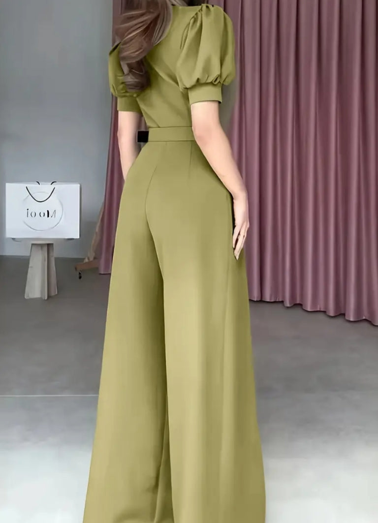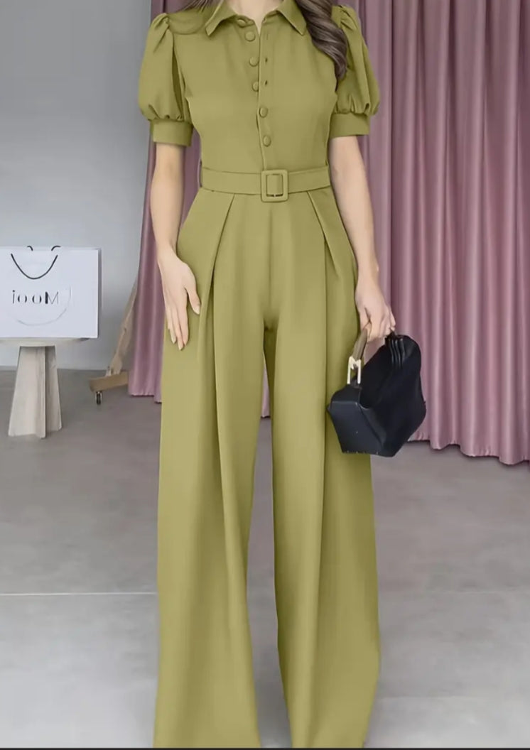 Zarafeti ve rahatlığı bir araya getiren bu yeşil kadın tulum, modern kesimi ve düğme detaylarıyla gardırobunuzun favorisi olacak.