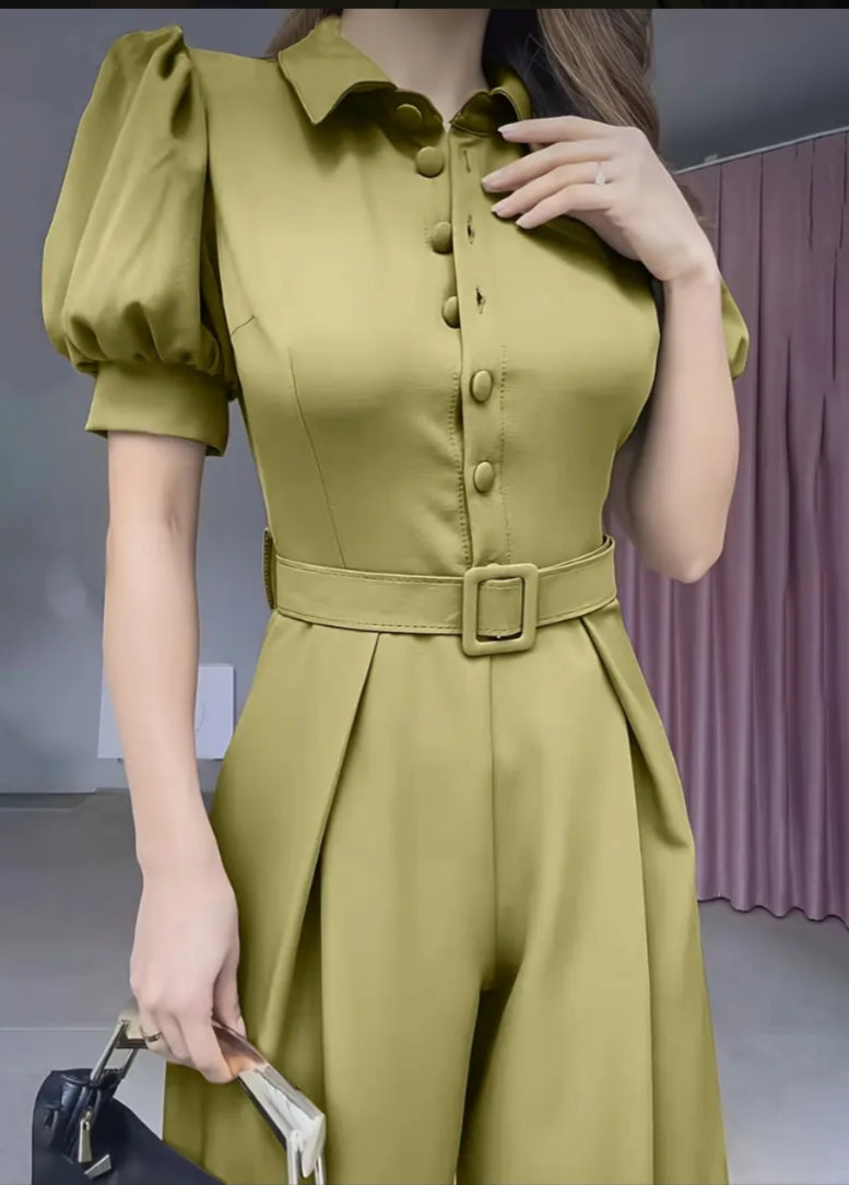 ✅ Yeni başlık: “Zarif Yeşil Kısa Kollu Düğmeli Kadın Tulum (Kemerli, 2025 Yaz Koleksiyonu)”