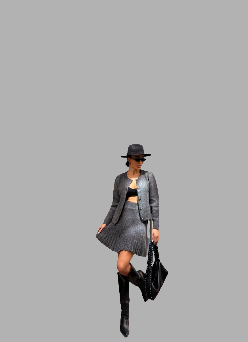 🌸 Bisiklet Yaka Hırka ve Pile Detaylı Etek Triko Takım 🌸 Zarif ve modern detaylarıyla öne çıkan bu triko takım, gardırobuna hem şıklık hem de rahatlık katıyor. Bisiklet yaka hırkası sade ve zamansız bir görünüm sunarken, pile detaylı eteği feminen bir