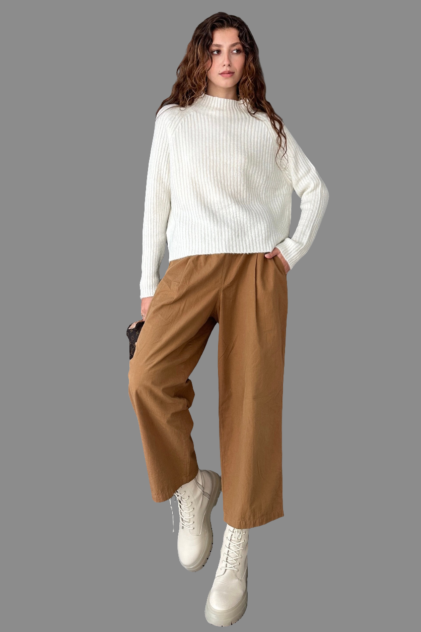 Yarım balıkçı yaka detayıyla hem sıcak tutan hem de zarif bir görünüm sağlayan bu fitilli triko kazak, gardırobunuzun vazgeçilmez parçası olacak. Esnek dokusu sayesinde vücuda tam oturur, gün boyu konfor sunar.