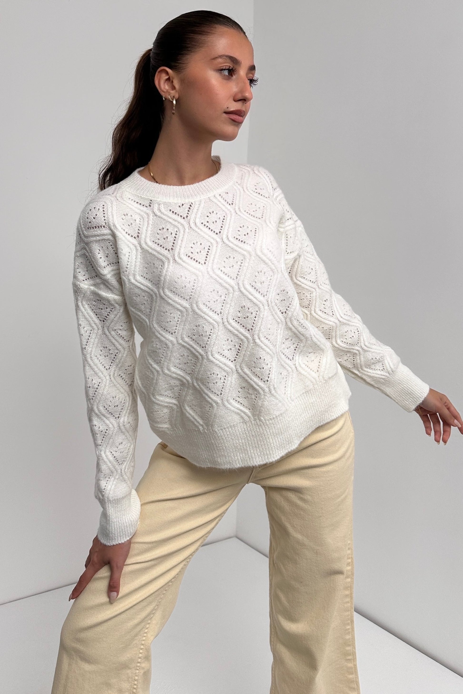 Şıklığı ve rahatlığı bir arada sunan bu triko kazak, zarif desenleri ve dokulu kumaşıyla öne çıkıyor. Bisiklet yaka tasarımı modern bir dokunuş katarken, yumuşak dokusu gün boyu konfor sağlar. Hem gündelik hem de şık kombinlerde stilinizi tamamlayacak zamansız bir parça.✨