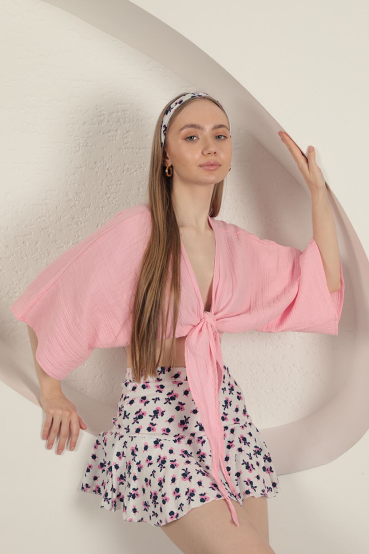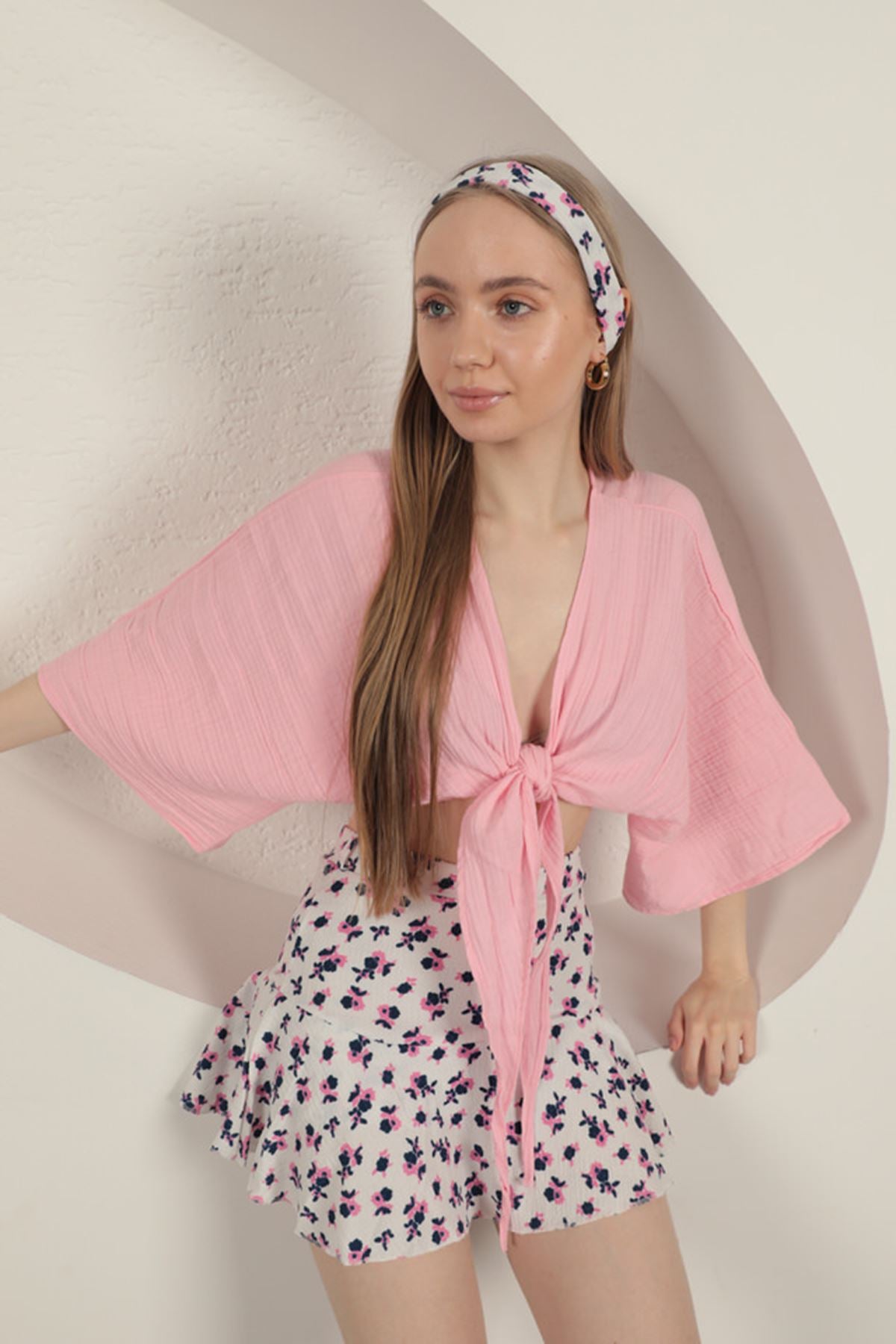 Bürümcük Çiçek Desen Şort Etek-Fuşya