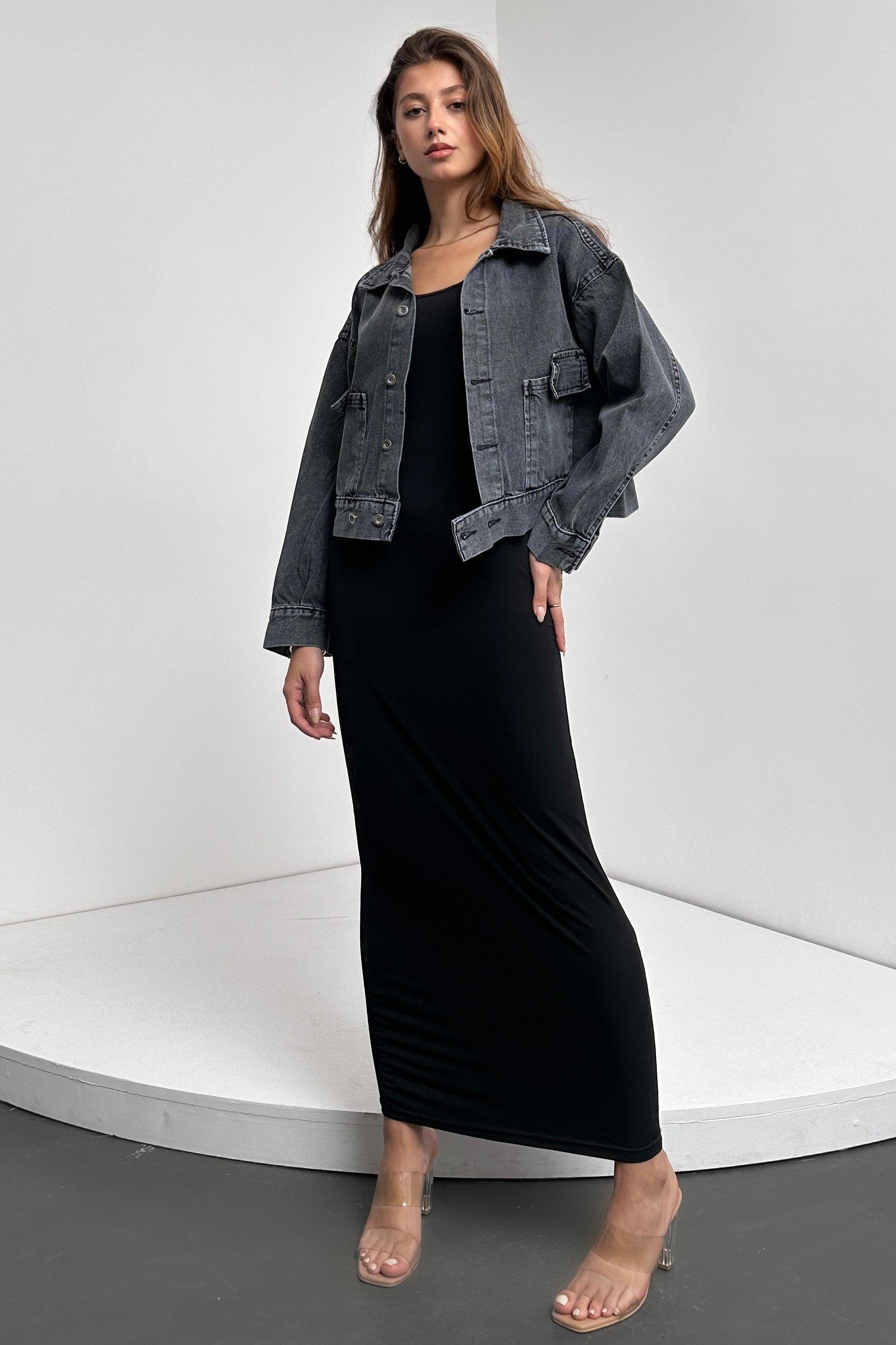 Çift Cep Beli Düğme Detaylı Denim Ceket