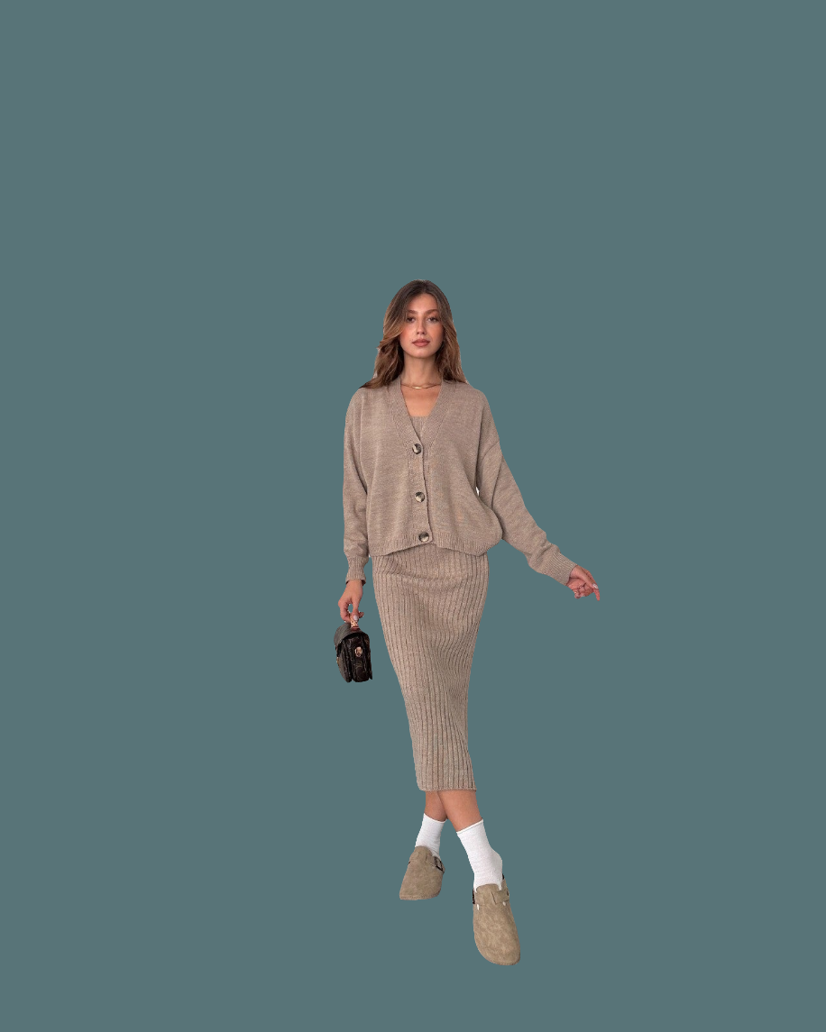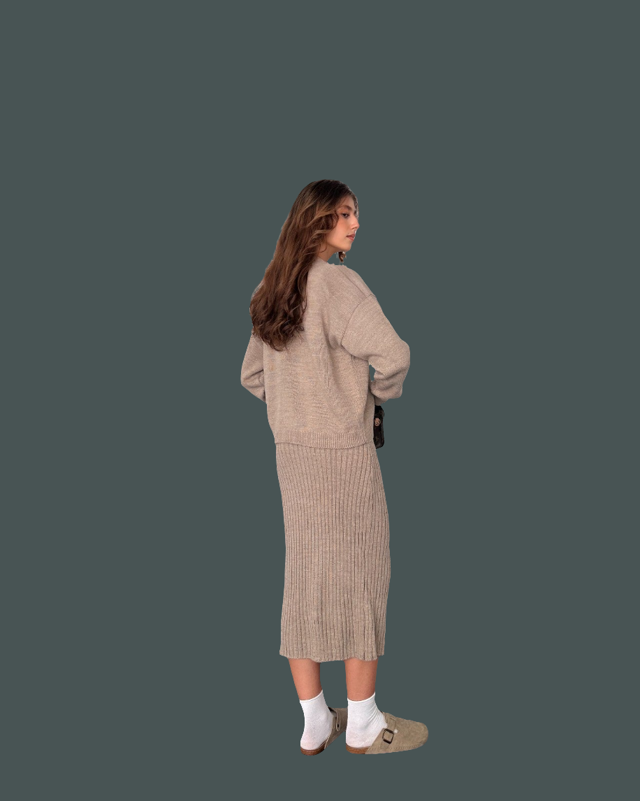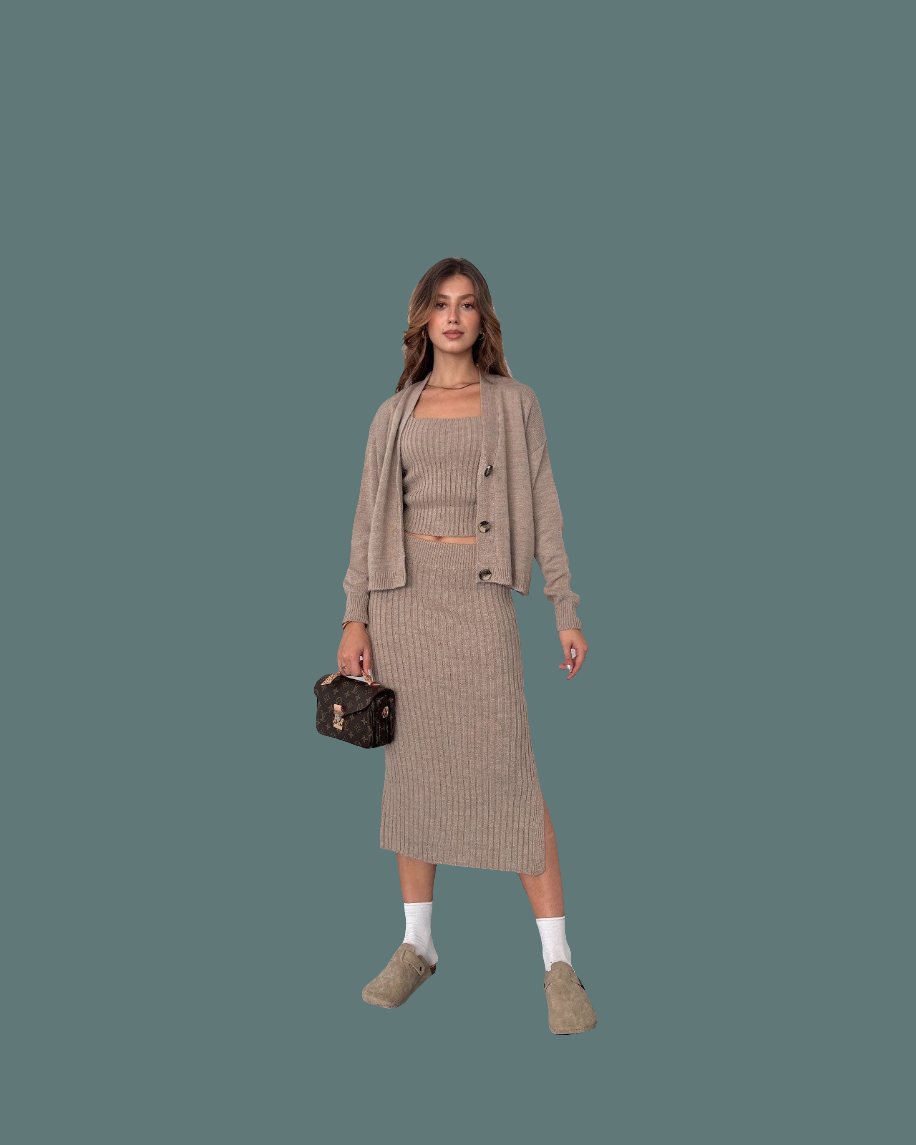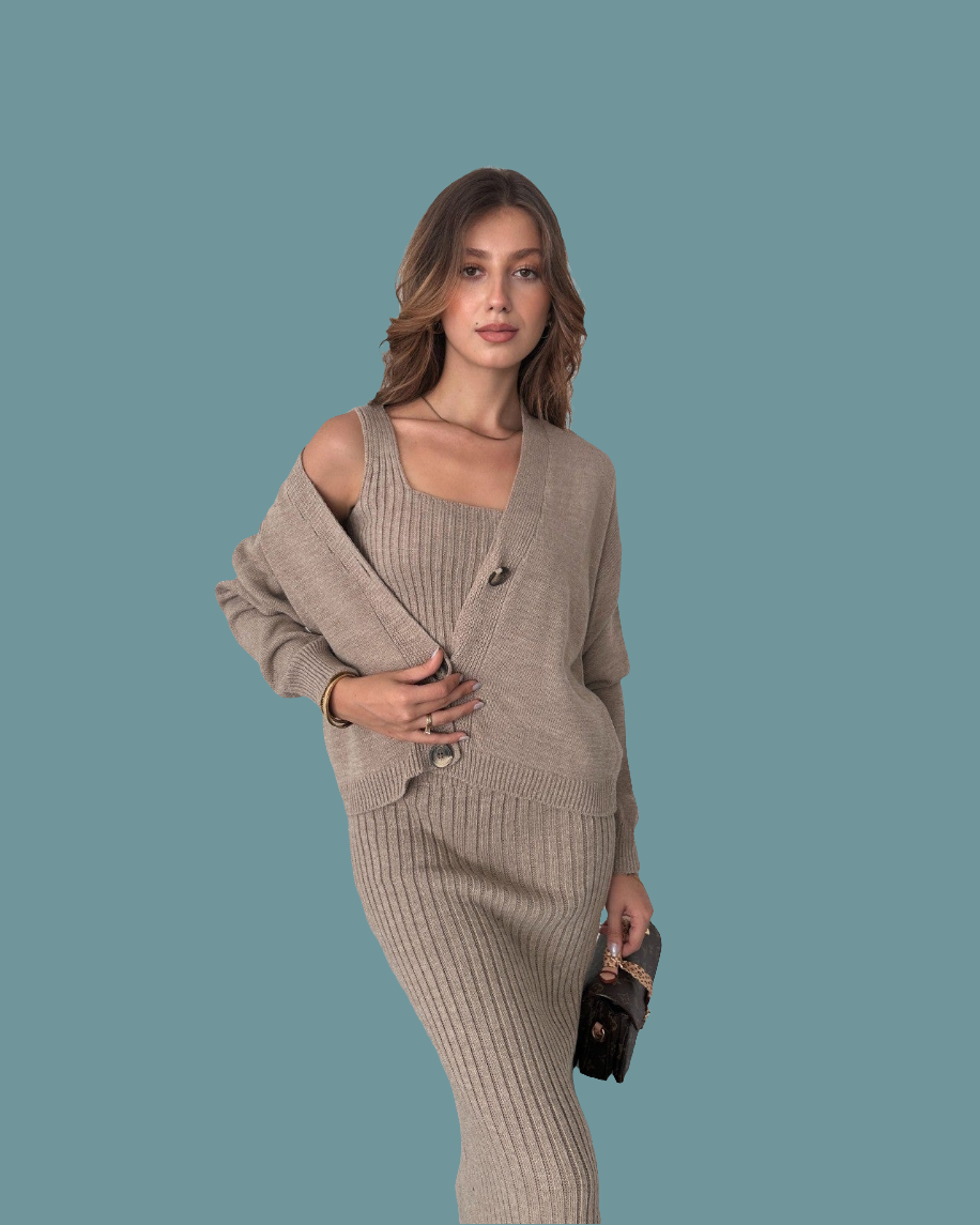 Hırka-Bluz-Etek 3\'lü Triko Takım