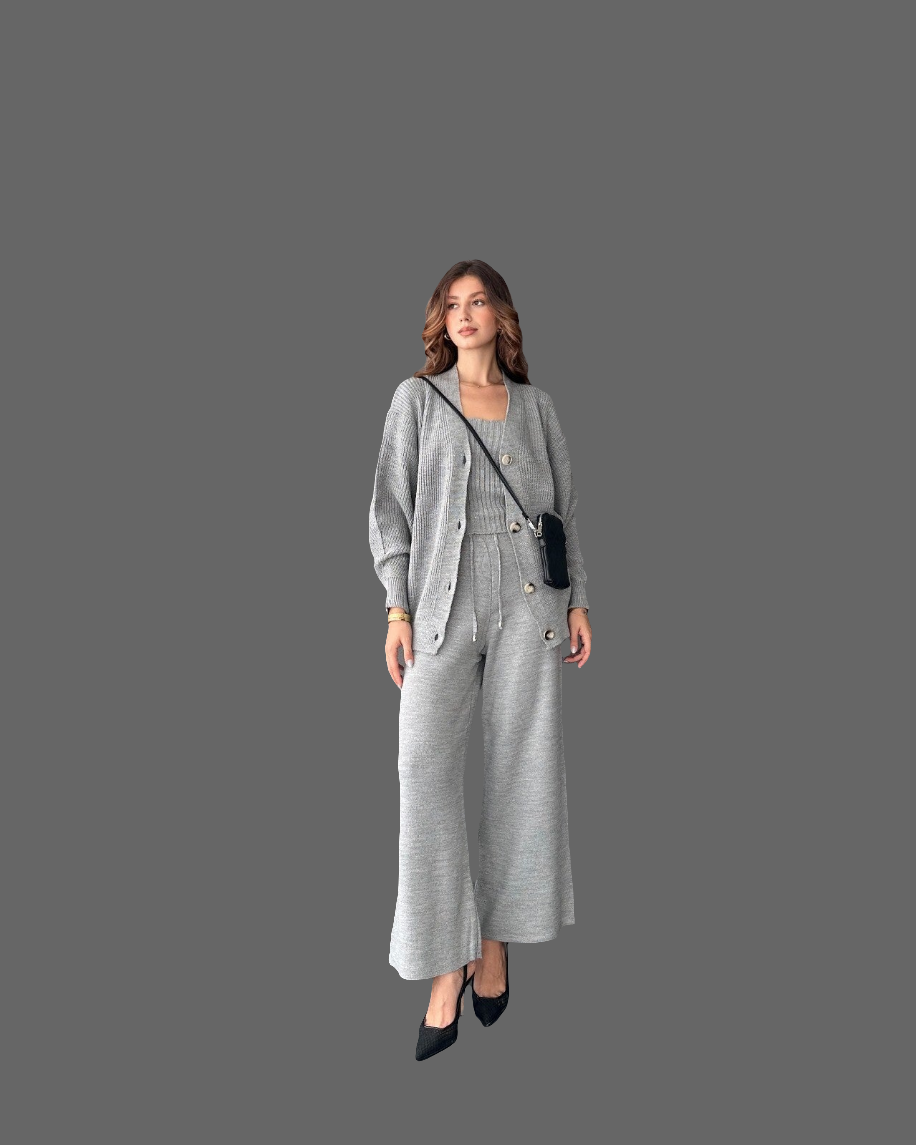 Hırka-Bluz Ve Pantolon Triko 3\'Lü Takım