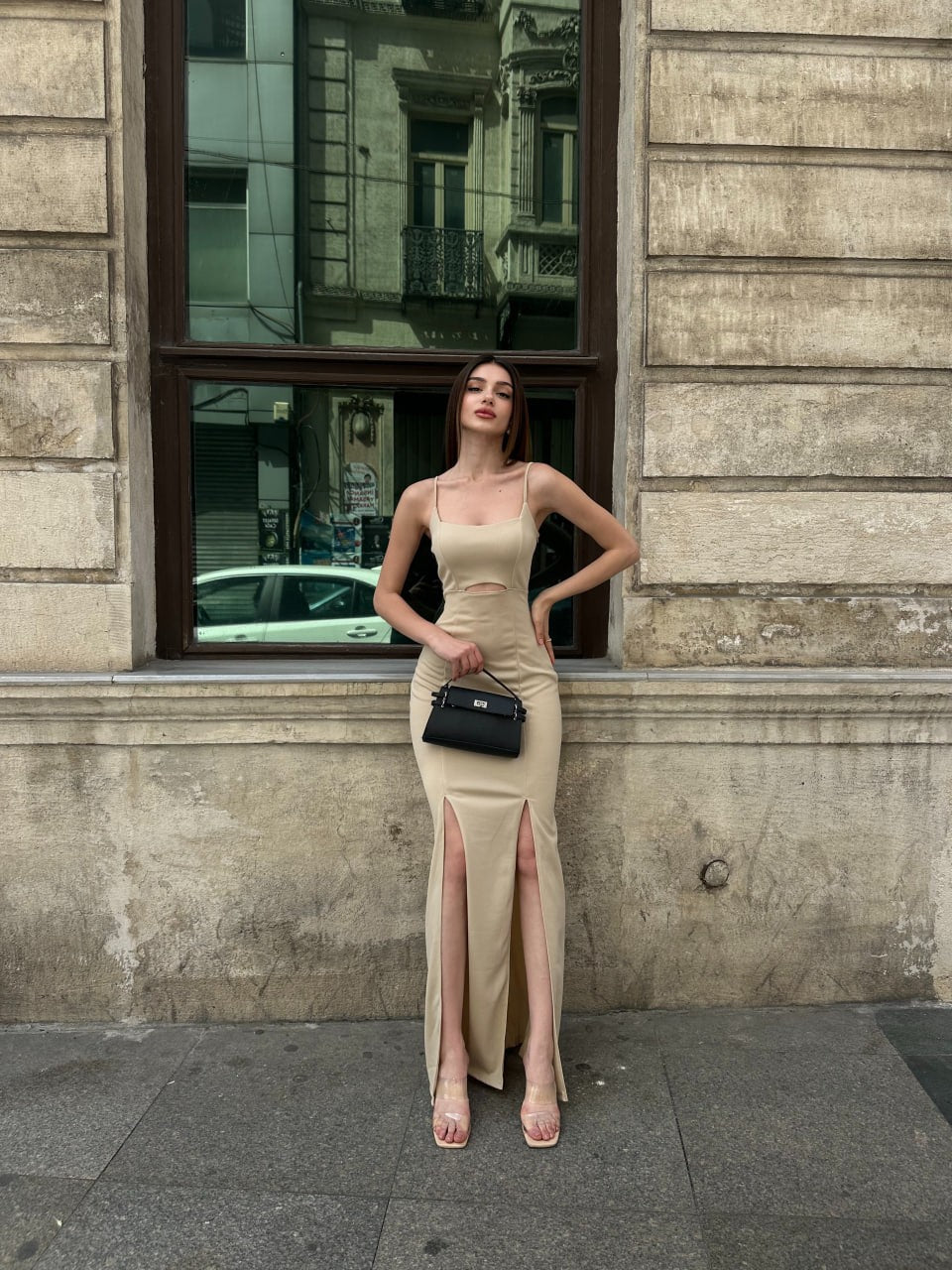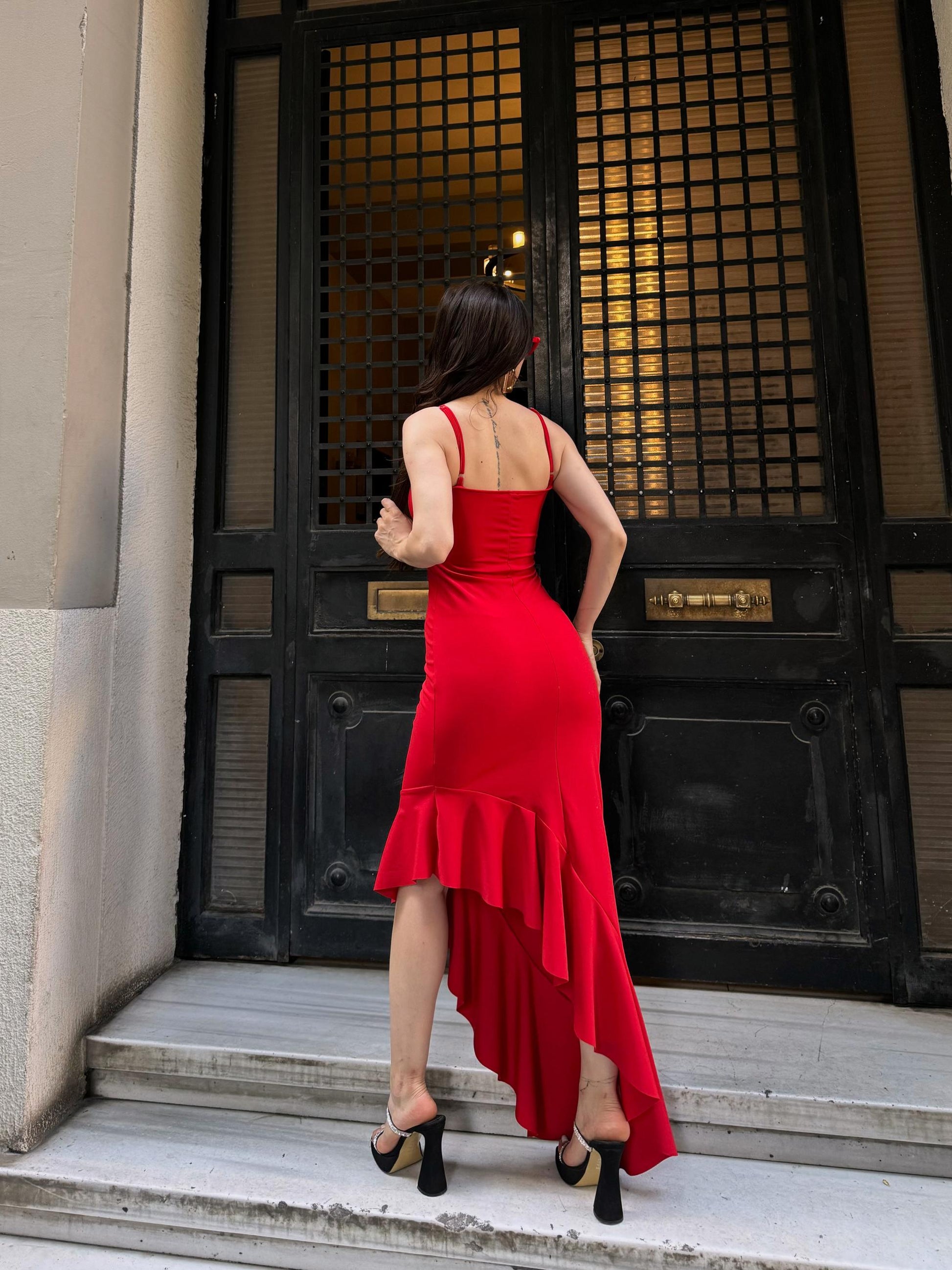 İp Askılı Etek Ucu Volanlı Midi Boy Elbise