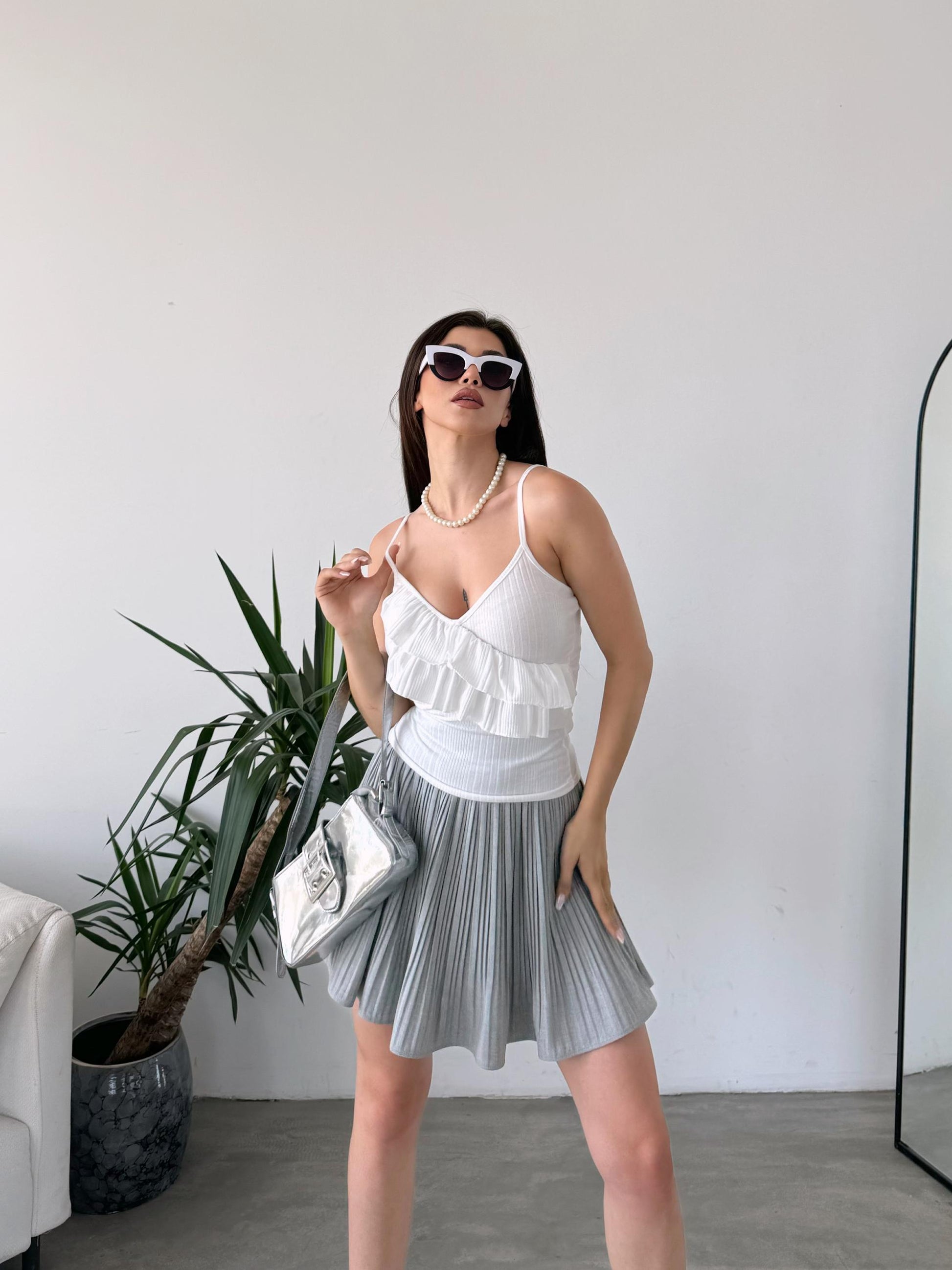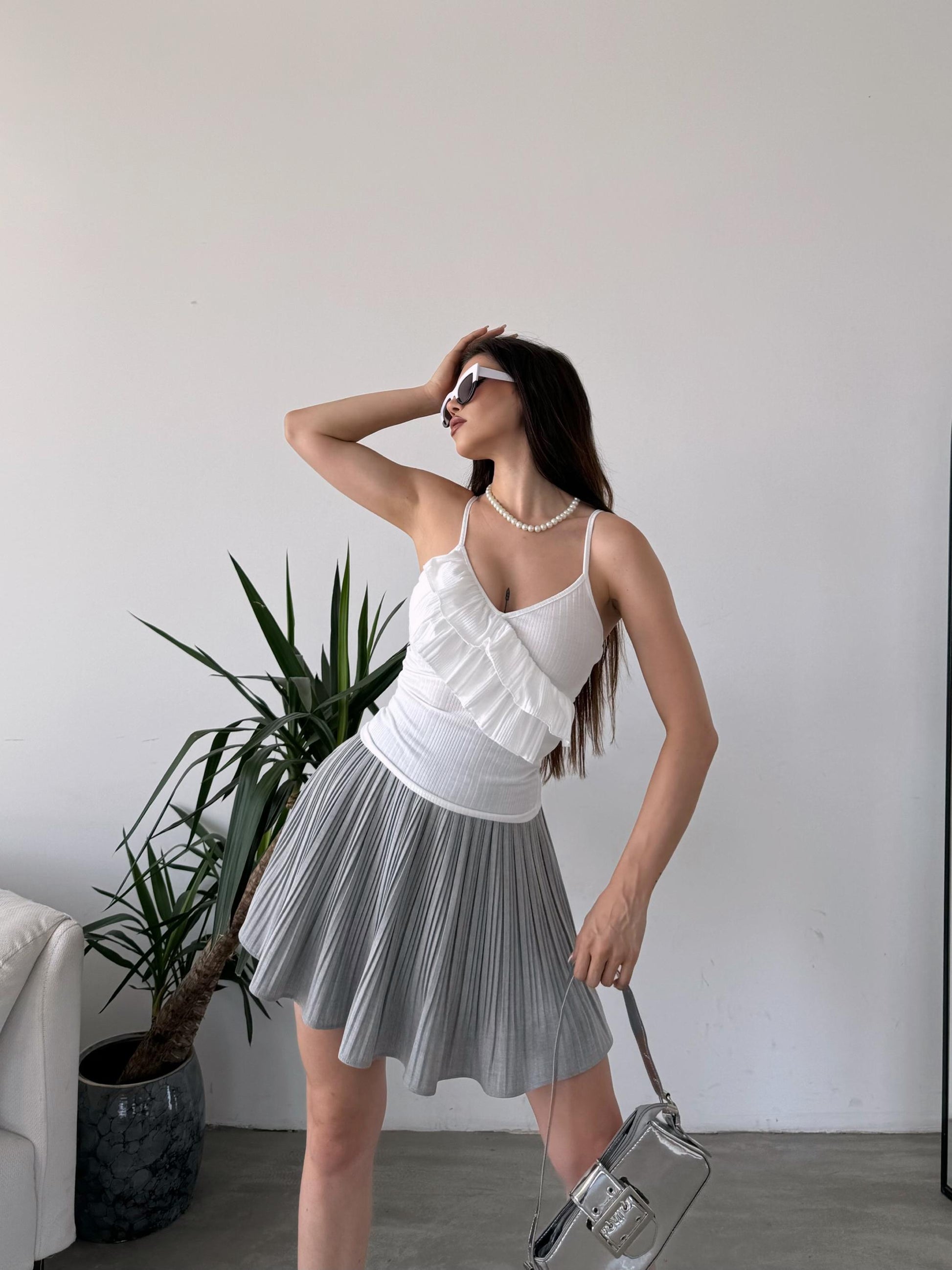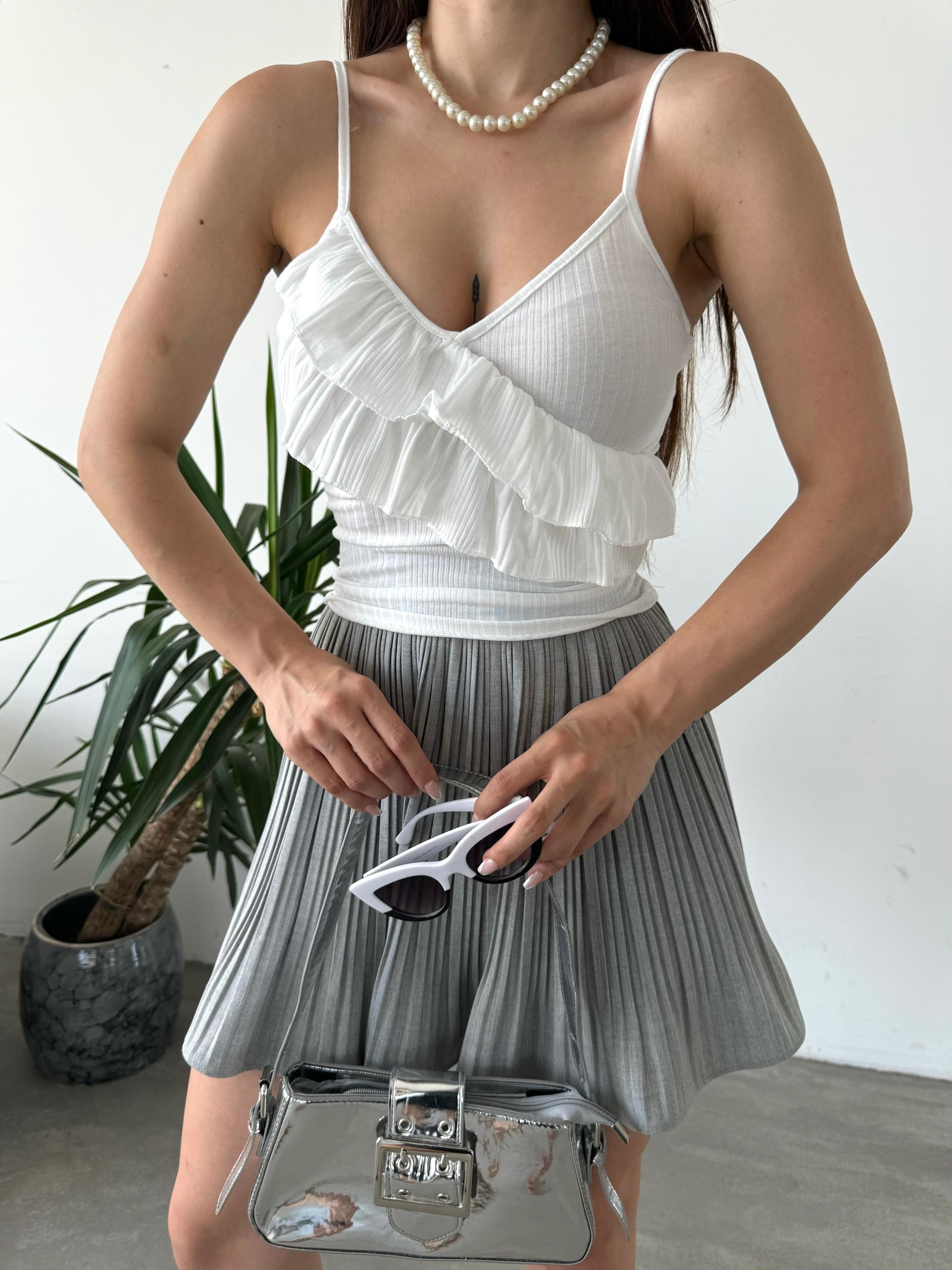 İp Askılı Volan Detaylı Bluz