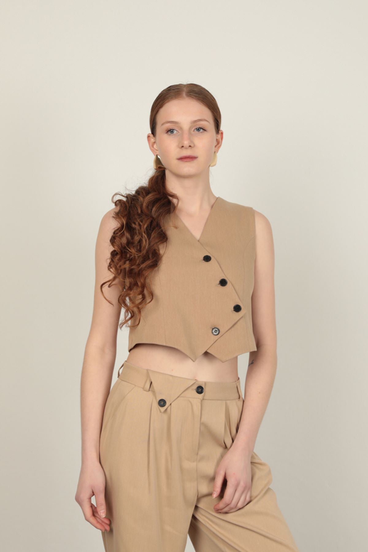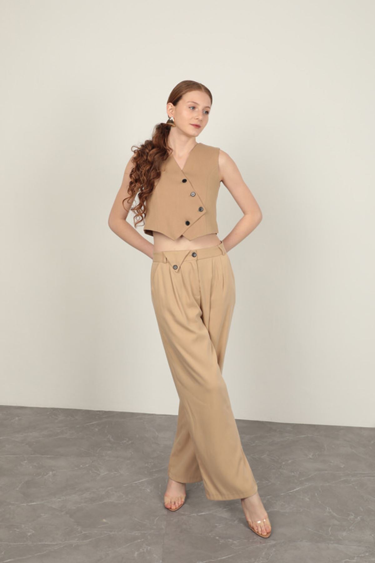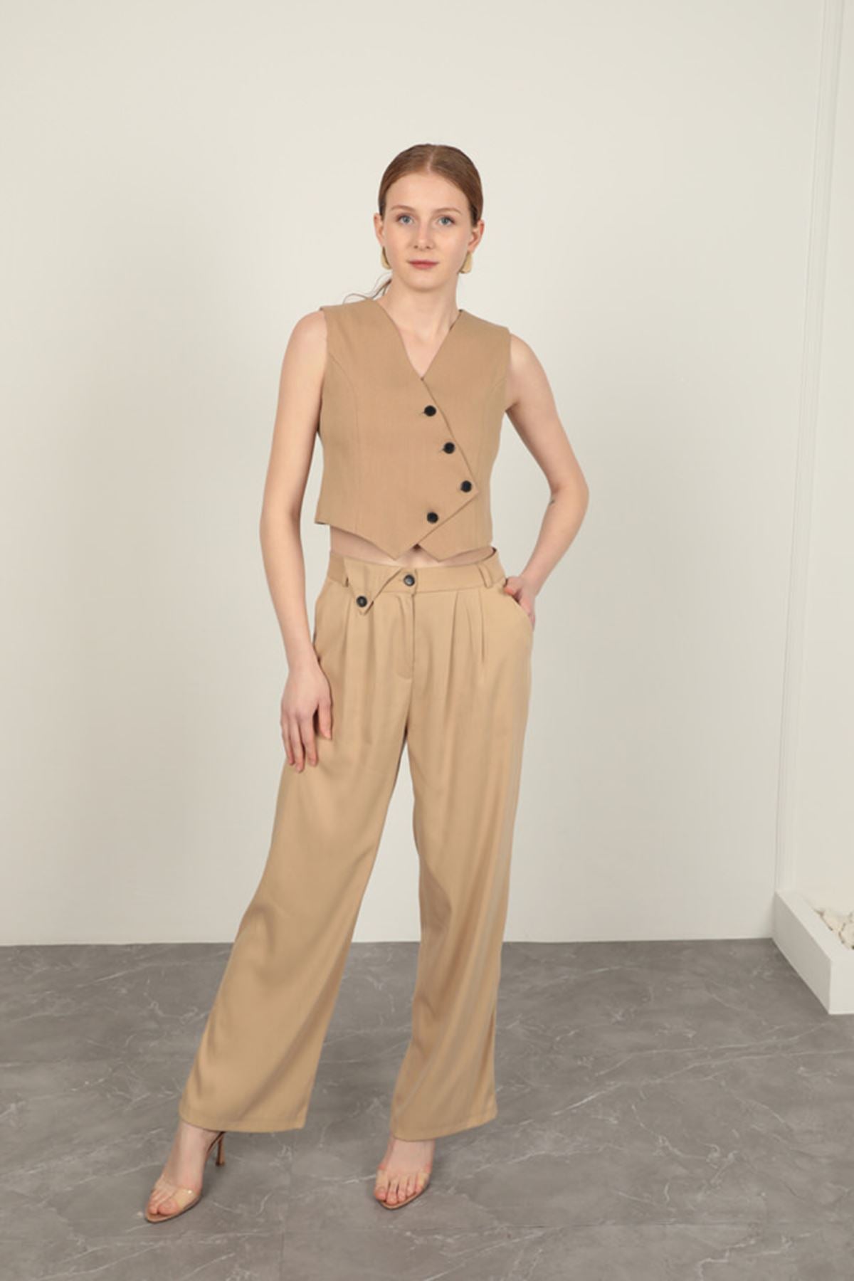 Poliviskon Kumaş Taş Kadın Yelek Takım
