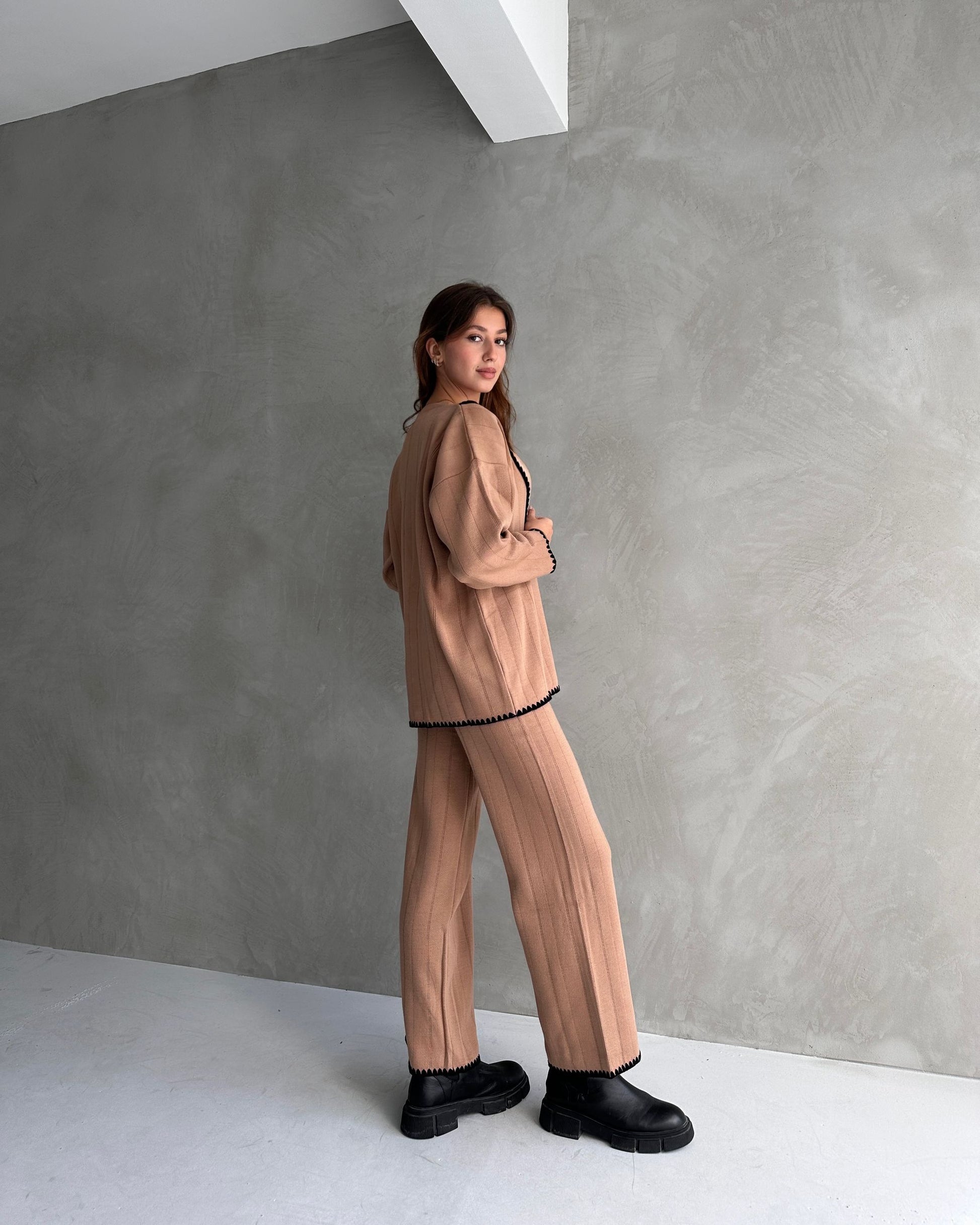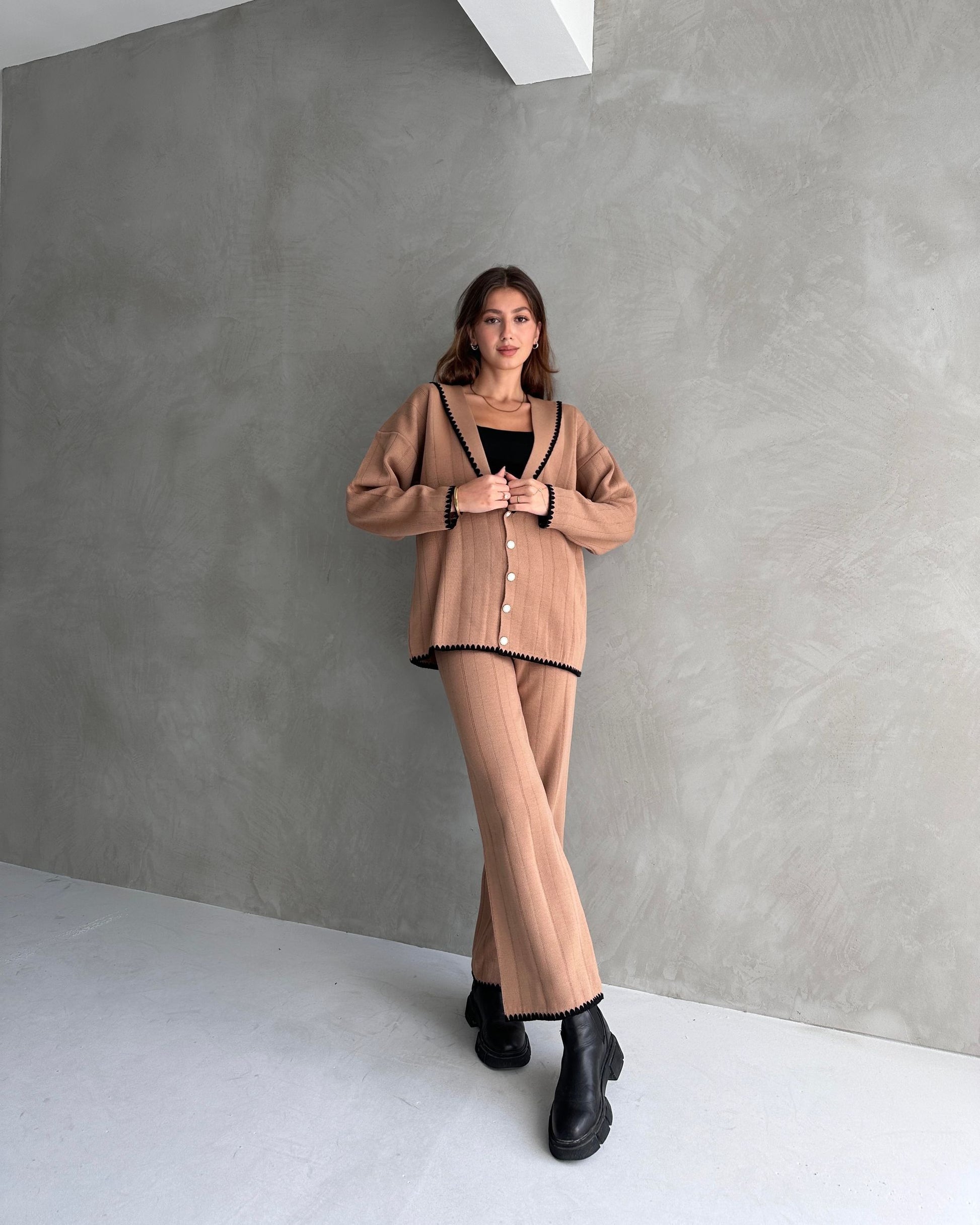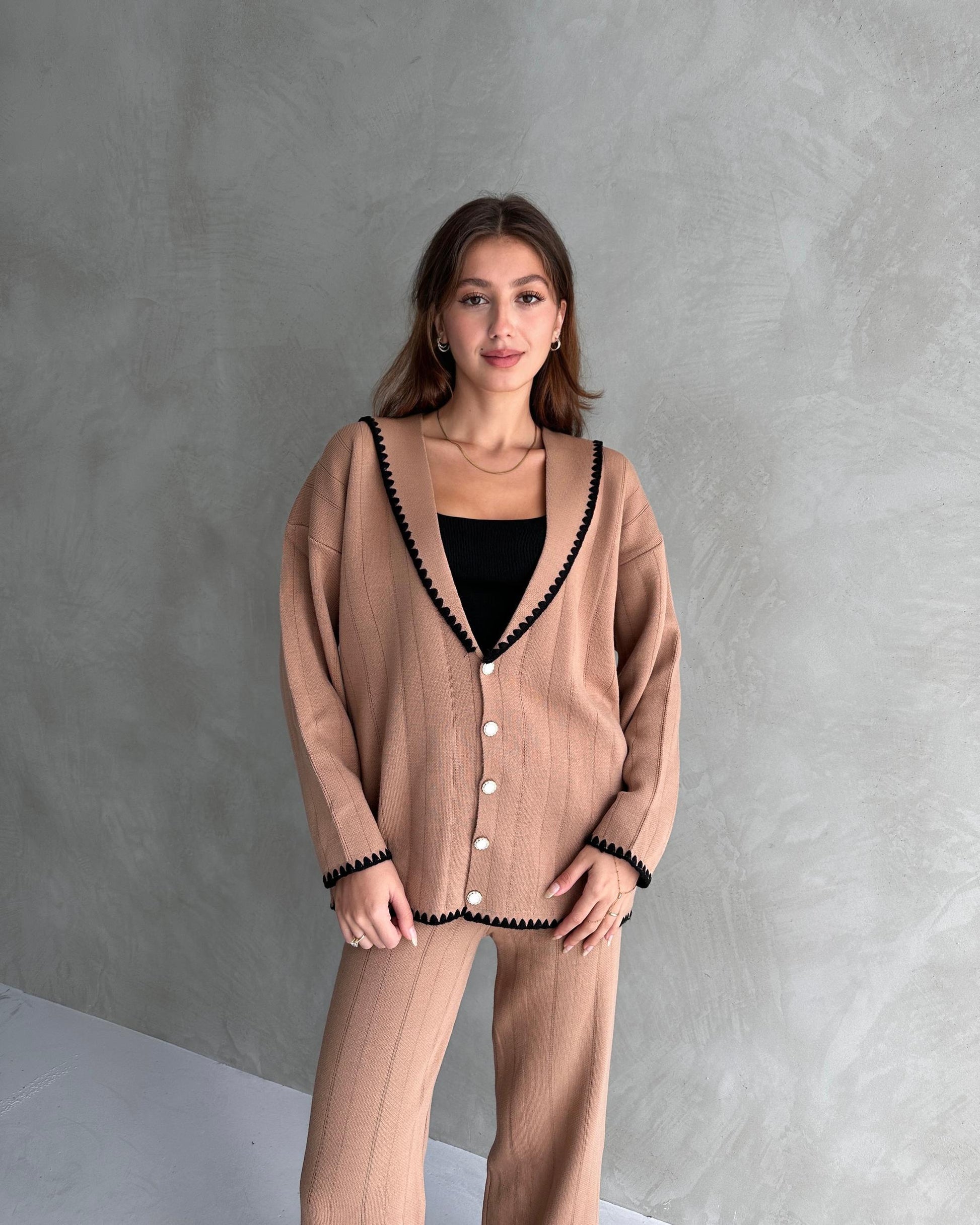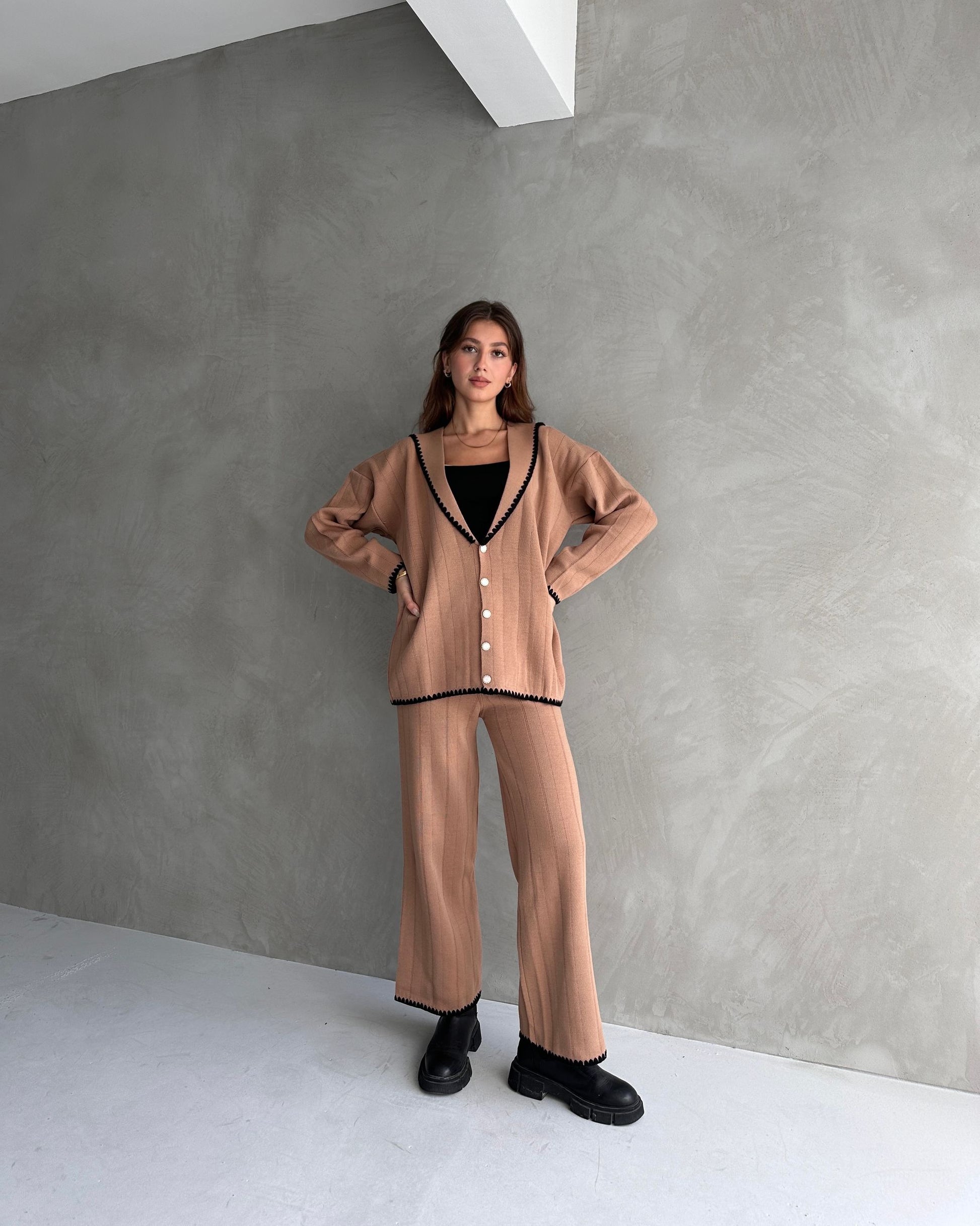 Şal Yaka Nervür Detaylı 2\'li Triko Takım