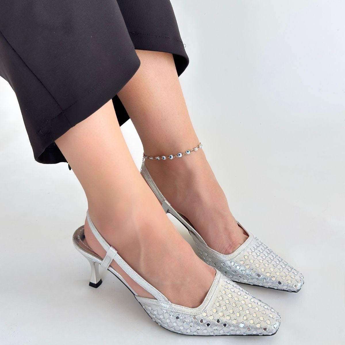 Sione Gümüş Cilt Topuklu Ayakkabı