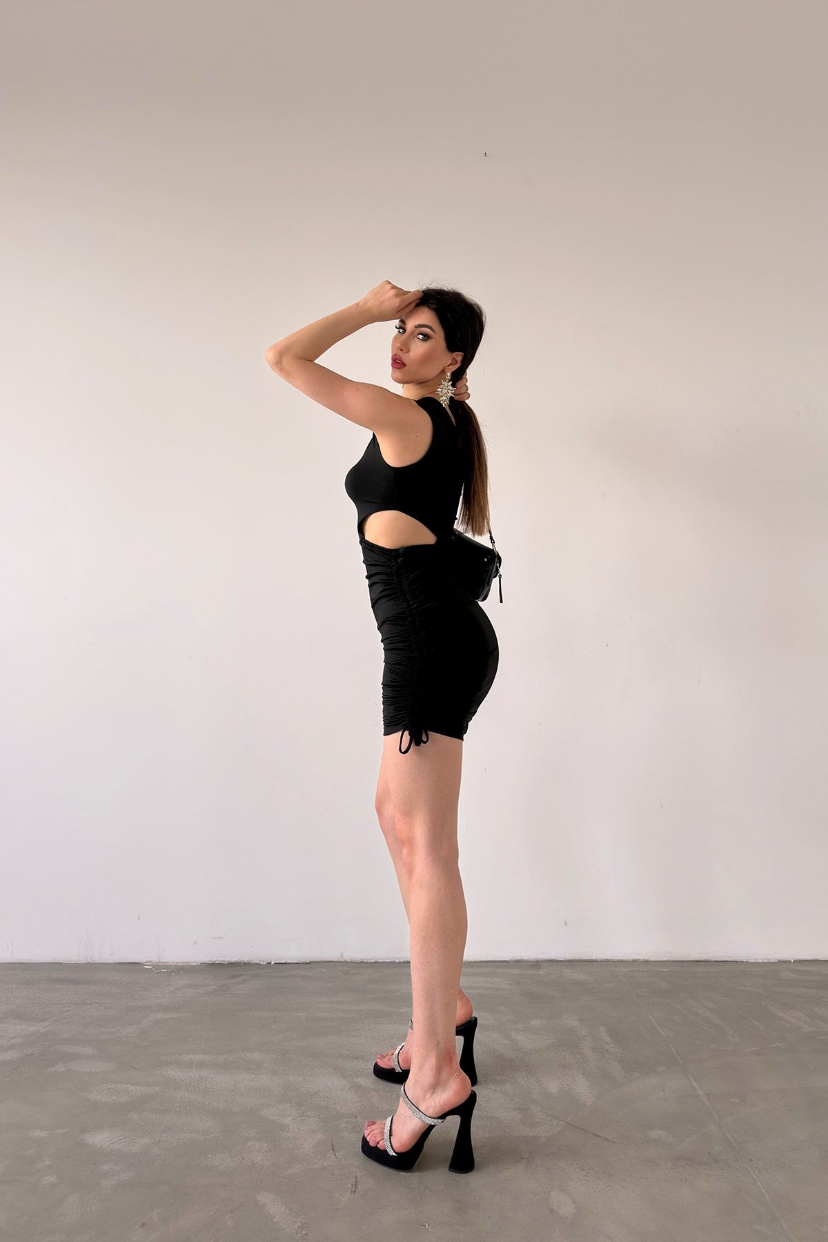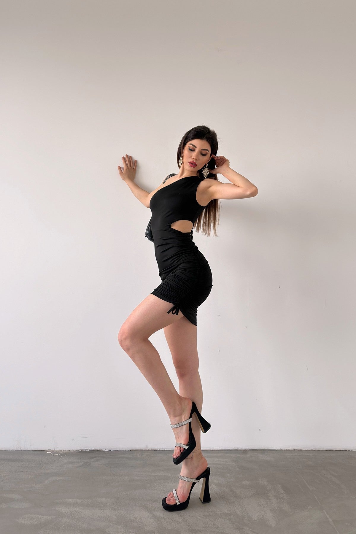Tek Omuz Beli Dekolteli Büzgü Detaylı Dalgıç Elbise