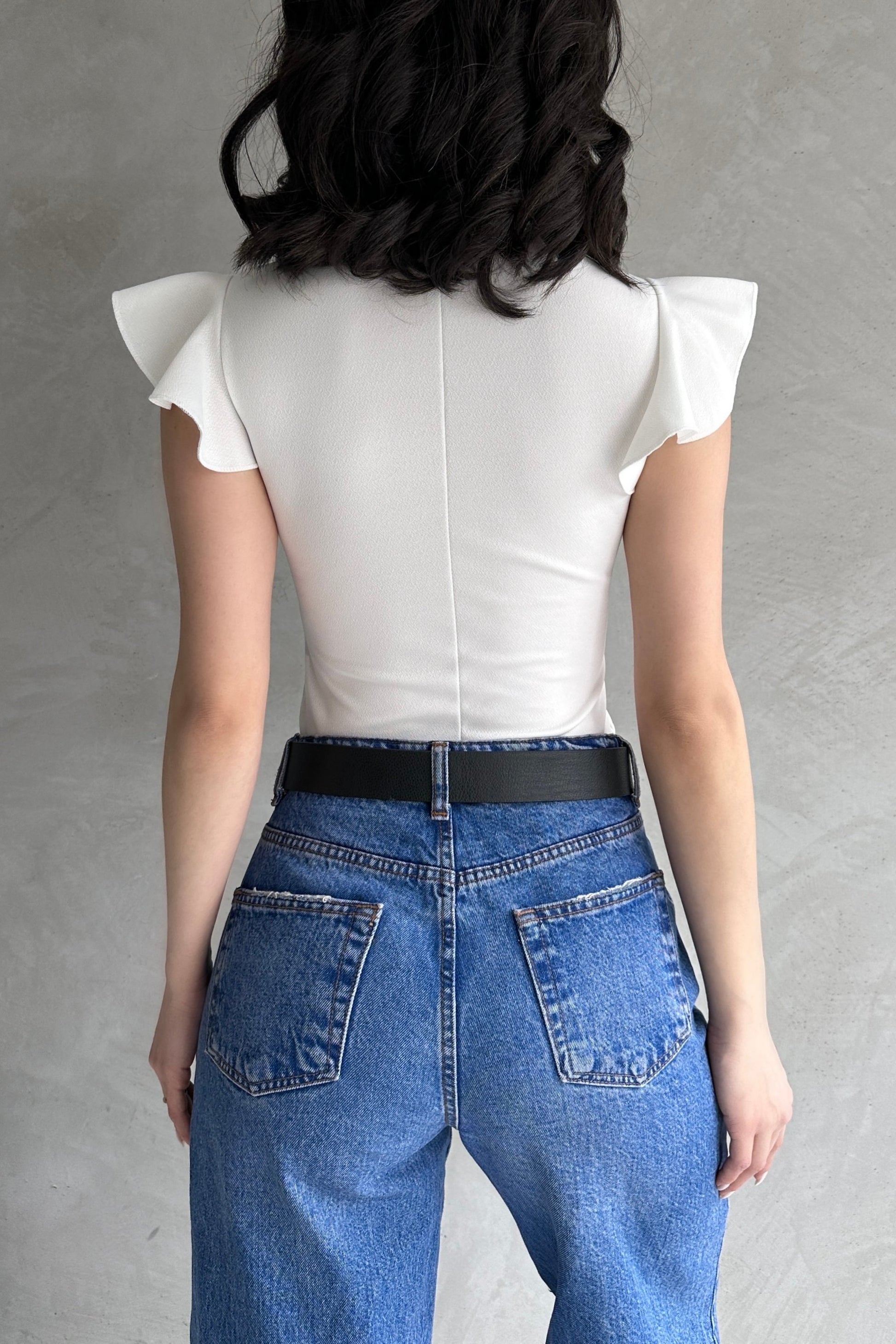 V Yaka Omuzu Volan Detaylı Crep Bluz