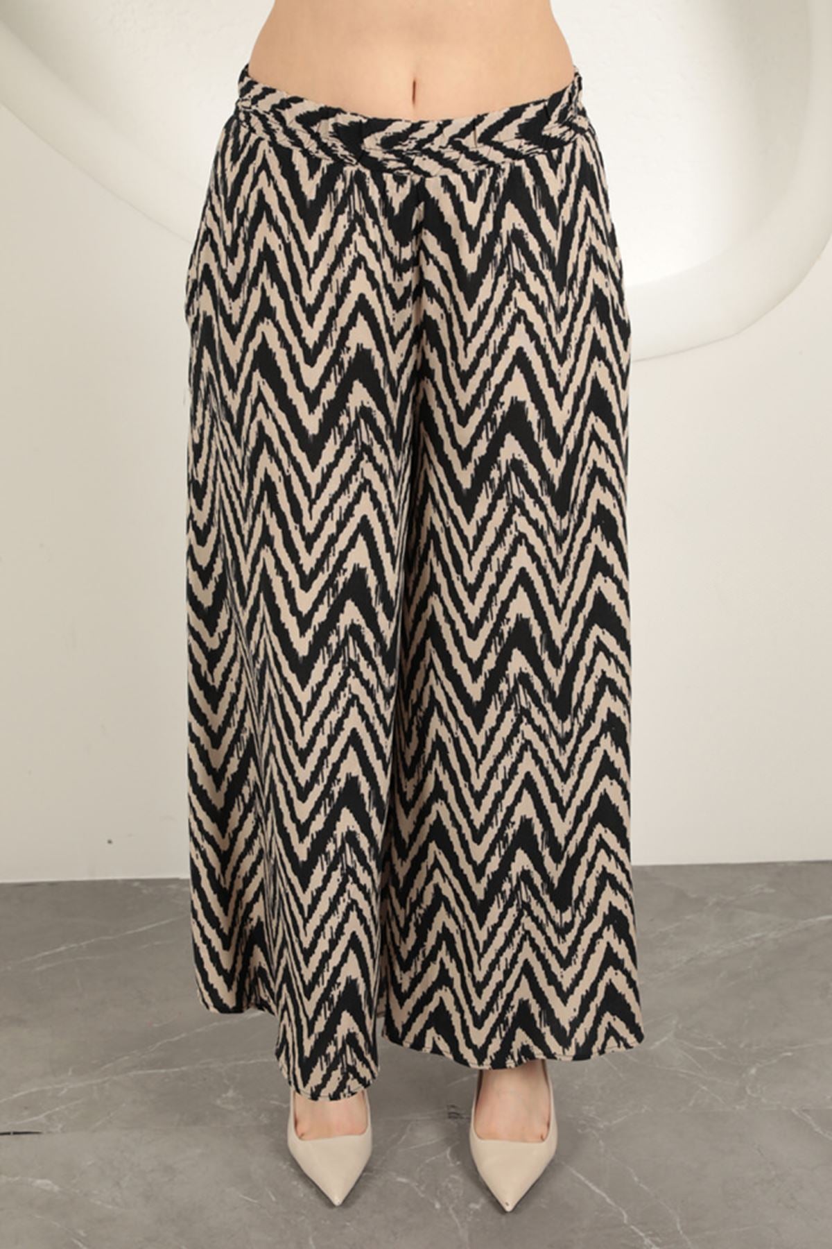 Viskon Kumaş Çizgili Kadın Takım-Bej
