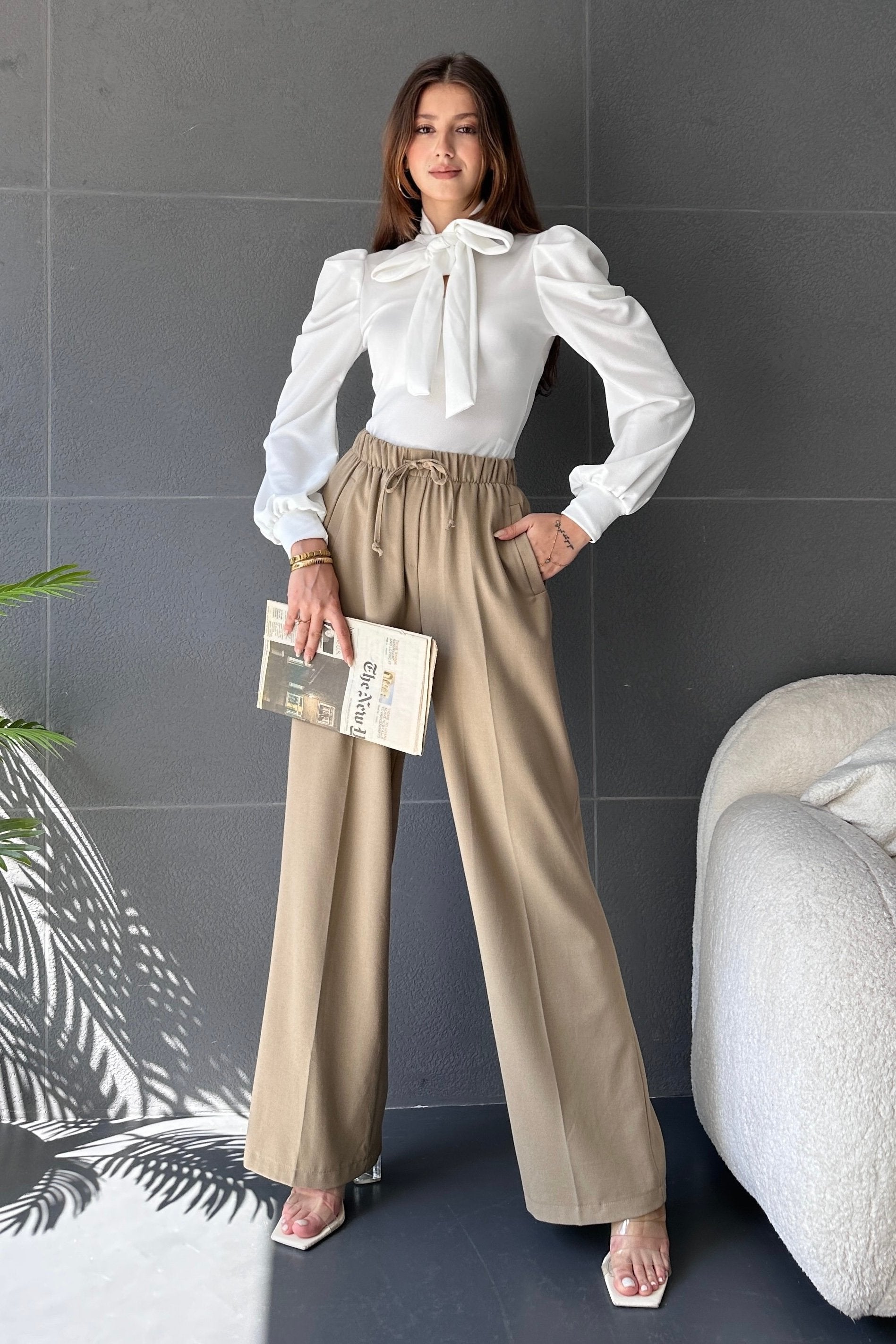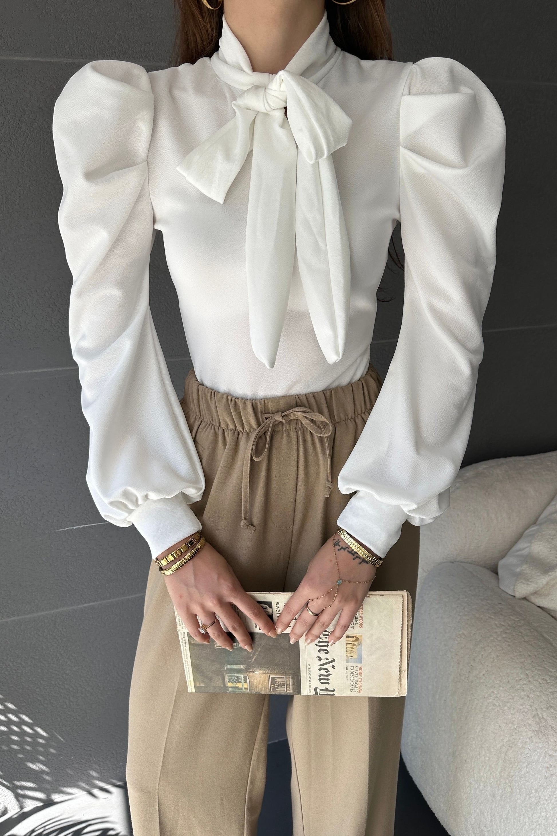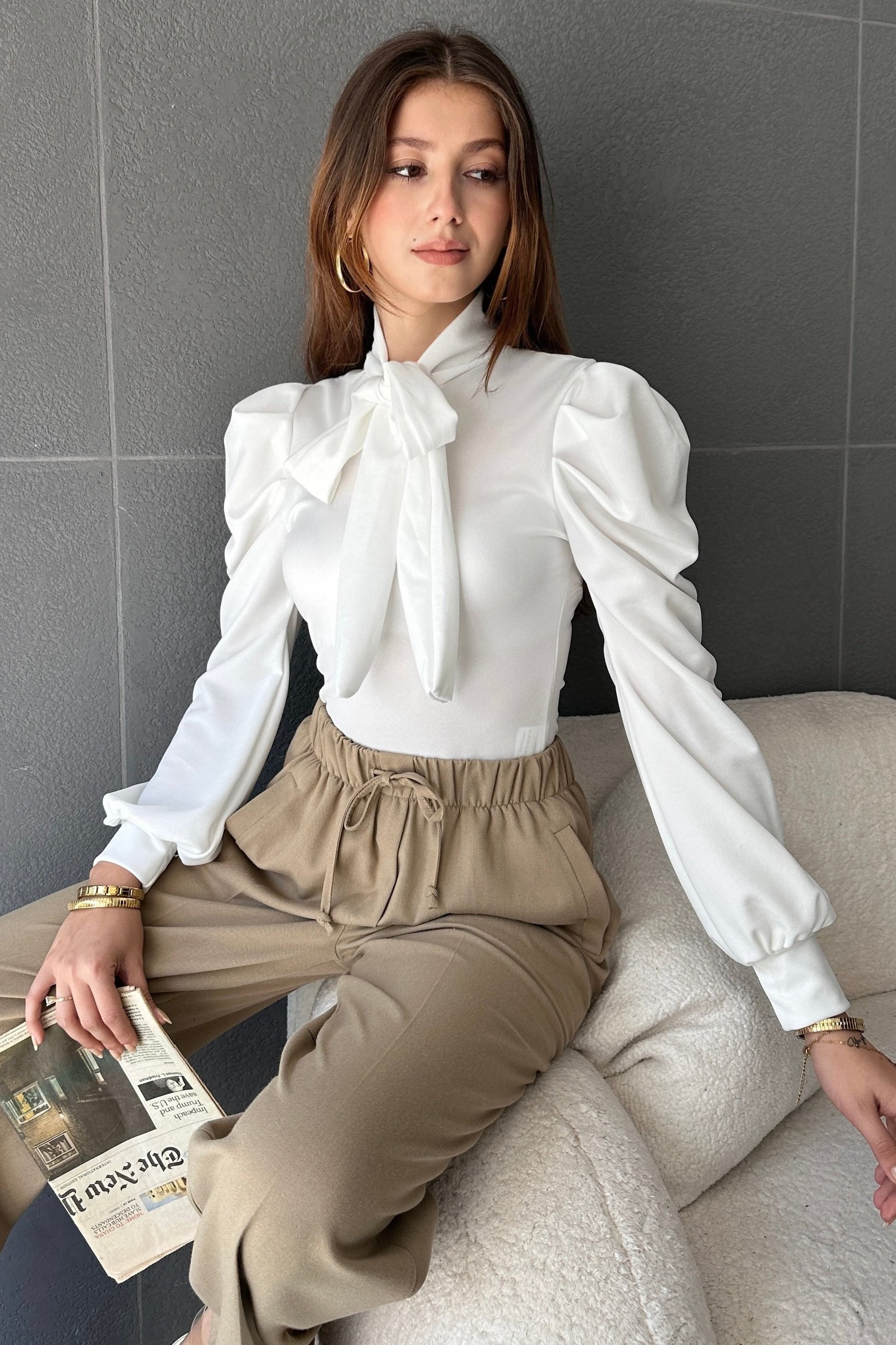 Yakası Bağcıklı Kolu Manşet Detaylı Bluz